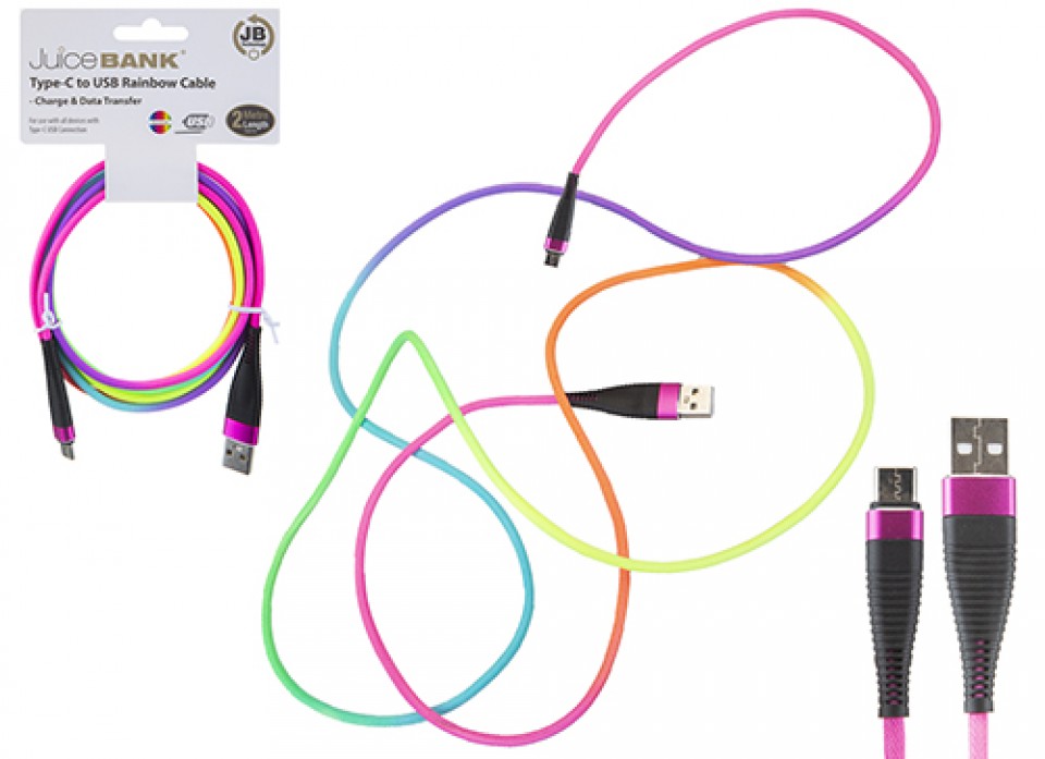 JUICE BANK RAINBOW TYPE C USB CHARGE & SYNC LEAD 2MTR