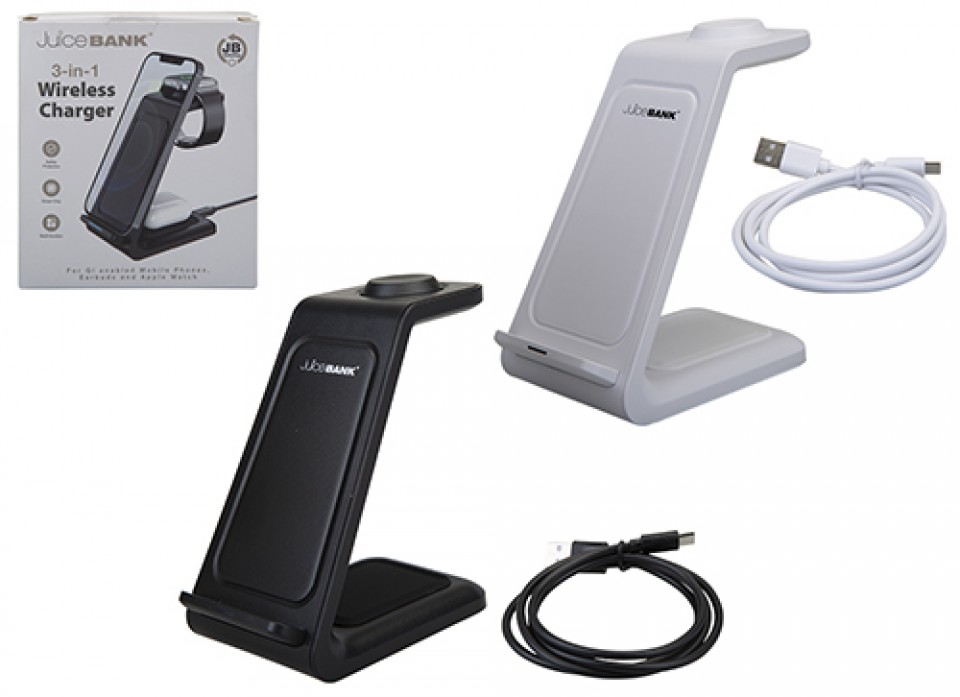 JUICE BANK 3 IN 1 WIRELESS CHARGER PHONE, EAR BUD, WATCH