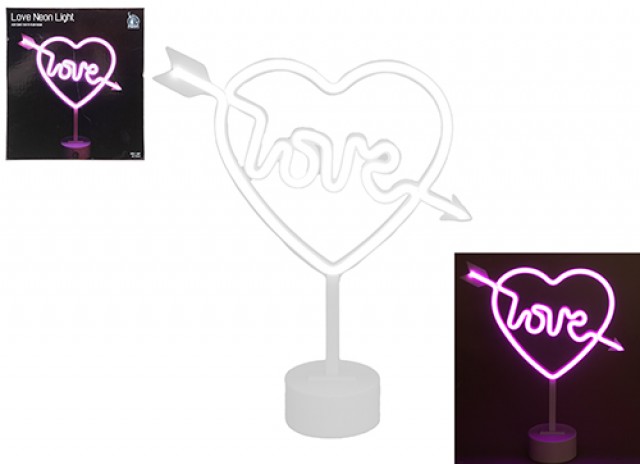 Eye catching cupid heart neon light on stand.