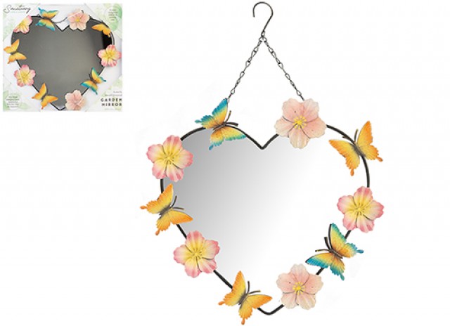 40cm Ornate Heart Garden Mirror Butterfly Design adds decorative charm and light to outdoor spaces. Featuring an elegant heart-shaped frame with detailed butterfly accents, it enhances gardens, patios and balconies. Ideal for garden centres and home decor retailers, this eye-catching mirror delivers strong visual appeal and on-trend outdoor styling.