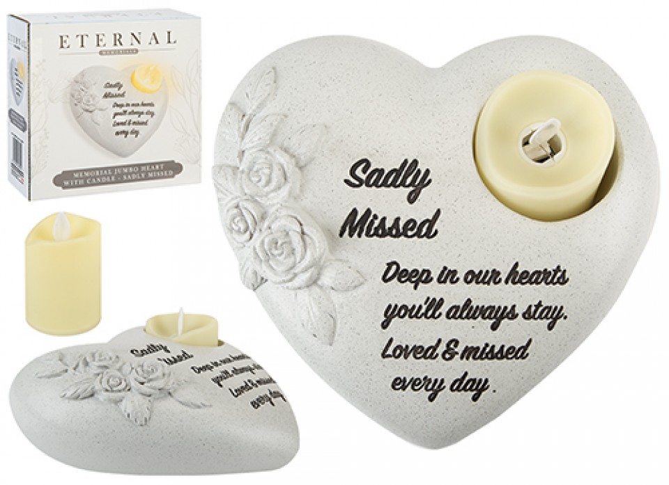 ETERNAL MEMORIAL HEART WITH CANDLE SADLY MISSED