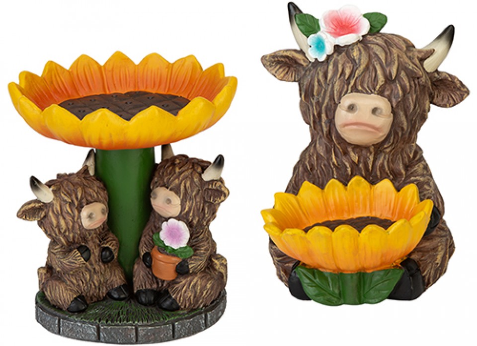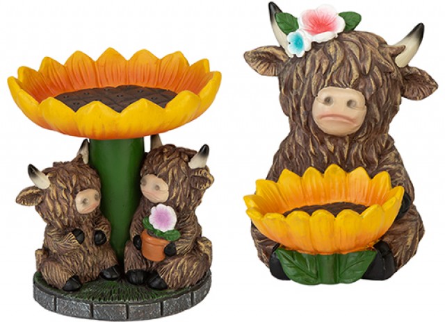 SANCTUARY HIGHLAND COW BIRD BATHS 2 ASSORTED