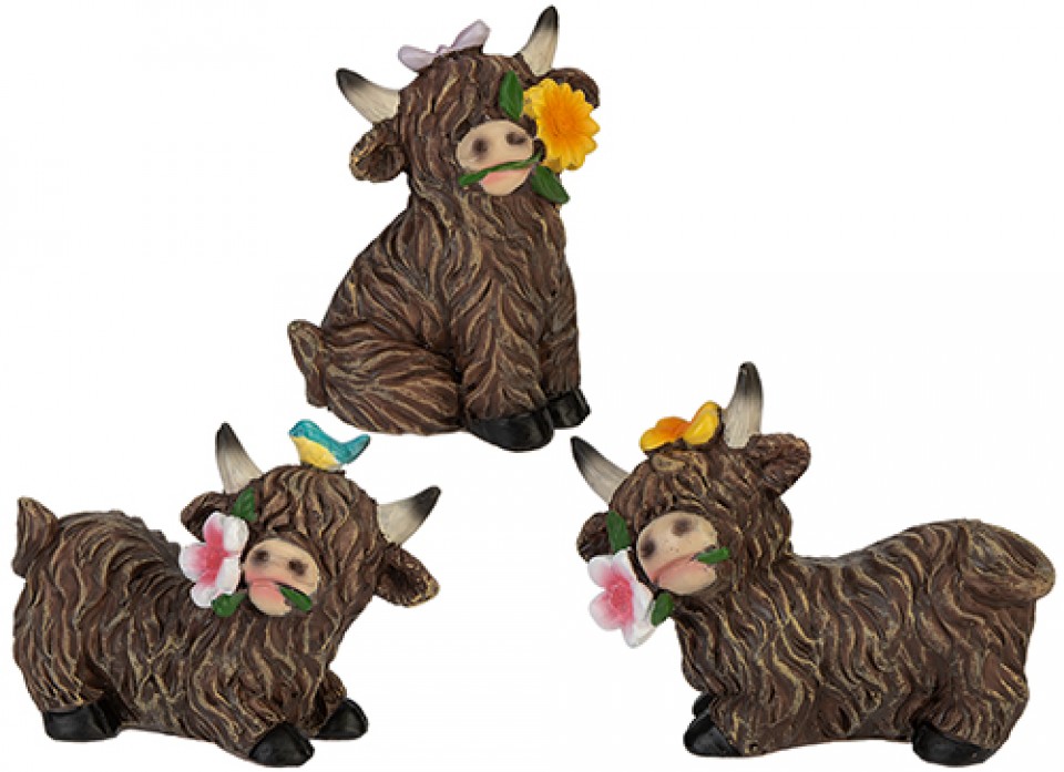SANCTUARY HIGHLAND COW WITH FLOWERS 3 ASSORTED