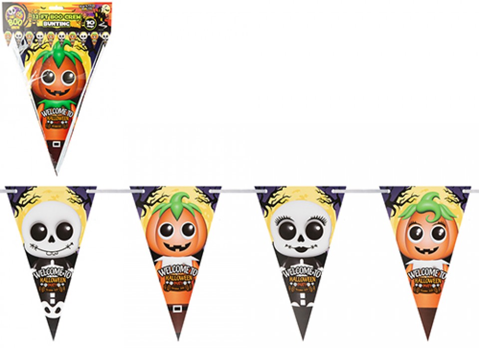 Create eye-catching Halloween displays with Boo Crew bunting, perfect for parties, retail spaces, and seasonal promotions. Measuring 12ft, this lightweight, easy-to-hang decoration features fun ghost-themed designs to attract customers. Ideal for wholesalers and event planners, it offers a reusable, high-impact solution to boost Halloween sales and visual merchandising.