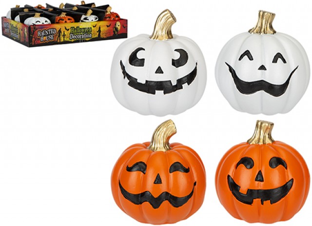 HAUNTED HOUSE HAPPY FACE PUMPKIN DECORATIONS 4 ASSORTED
