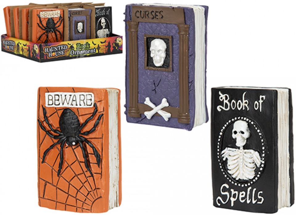 Add a spooky twist to seasonal displays with the Haunted House 3 Assorted Polyresin Halloween Book Ornaments . intricately designed to resemble eerie spellbooks with haunted detailing. Perfect for home decor, shop windows, or themed events, these durable polyresin pieces offer visual impact and are ideal for boosting Halloween giftware sales.