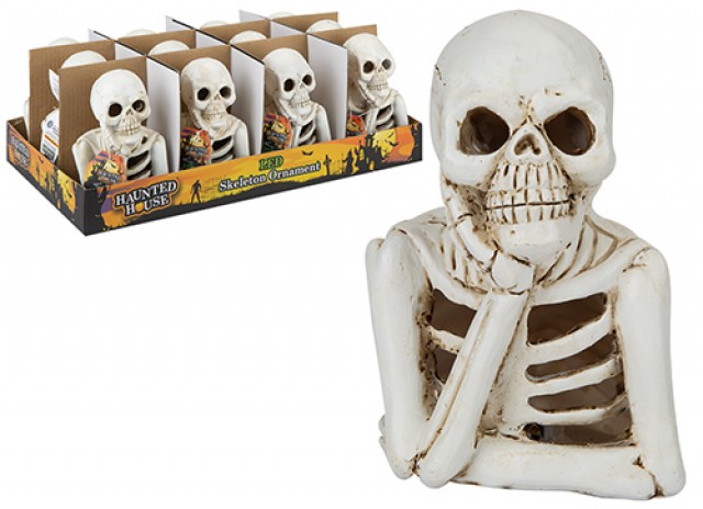 Light up seasonal sales with the Haunted House LED Polyresin Skeleton Ornament - a detailed skeleton figure featuring glowing LED accents for added Halloween impact. Crafted from high-quality polyresin, it's perfect for haunted house displays, spooky shelf decor, and themed gifting.