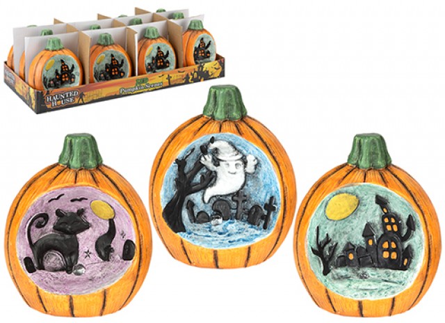 HAUNTED HOUSE LED PUMPKIN SCENES 3 ASSORTED