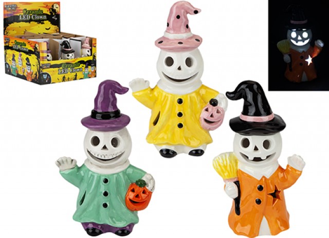 HAUNTED HOUSE GLOSSY CERAMIC LED CLOWN 3 COLOURS