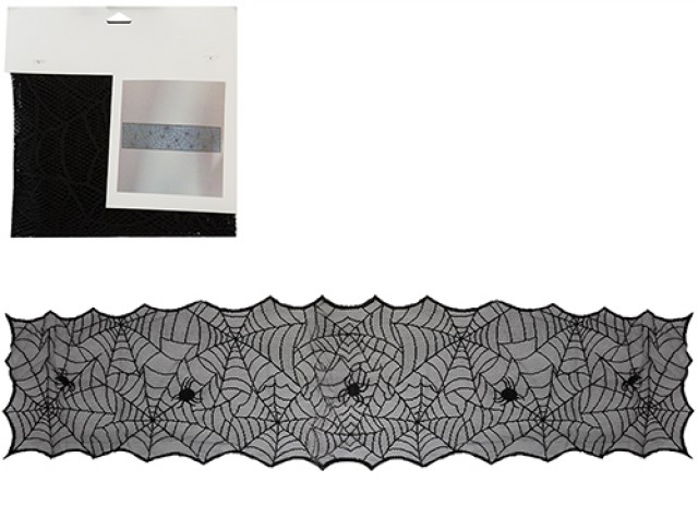 HAUNTED HOUSE SPIDERS WEB TABLE RUNNER 183CM X 37CM