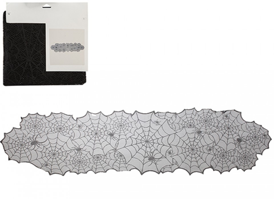 HAUNTED HOUSE SPIDERS WEB OVAL TABLE RUNNER 183CM X 45CM