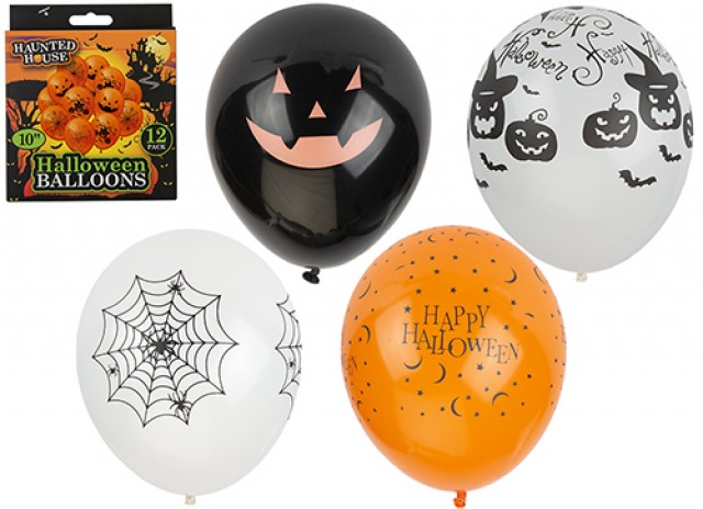 HAUNTED HOUSE PRINTED BALLOONS HALLOWEEN 10" PACK OF 12