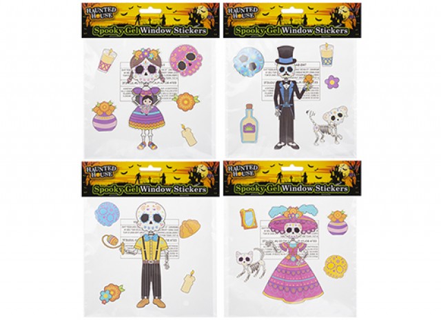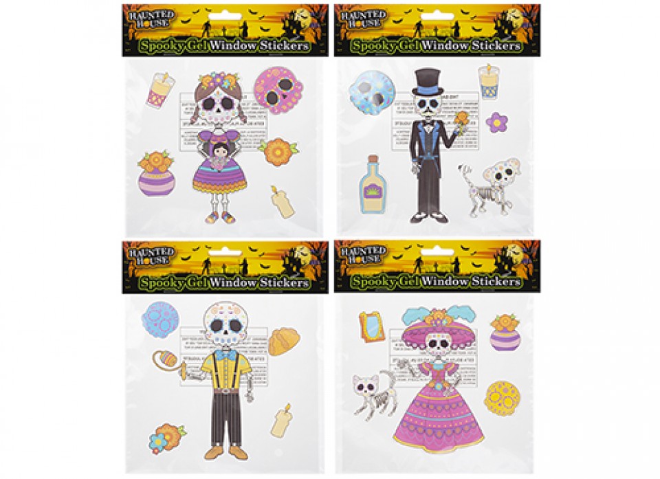 Day of the Dead popular window stickers, made from strong Gel formular easy to remove leaving no residue. Ideal for celebrating Halloween.