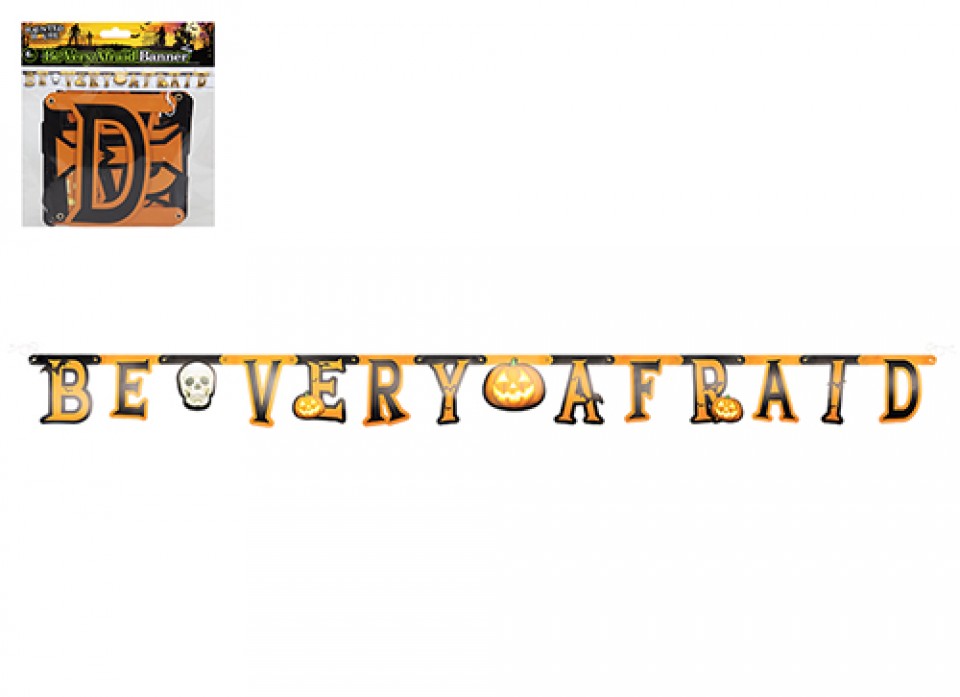 Printed Halloween banner. Be Very Afraid design that can be hung above windows, doors, entrances.