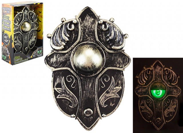 This cool doorbell has a blinking eye ball that lights and makes sounds when pressed. Novelty Halloween door decoration.