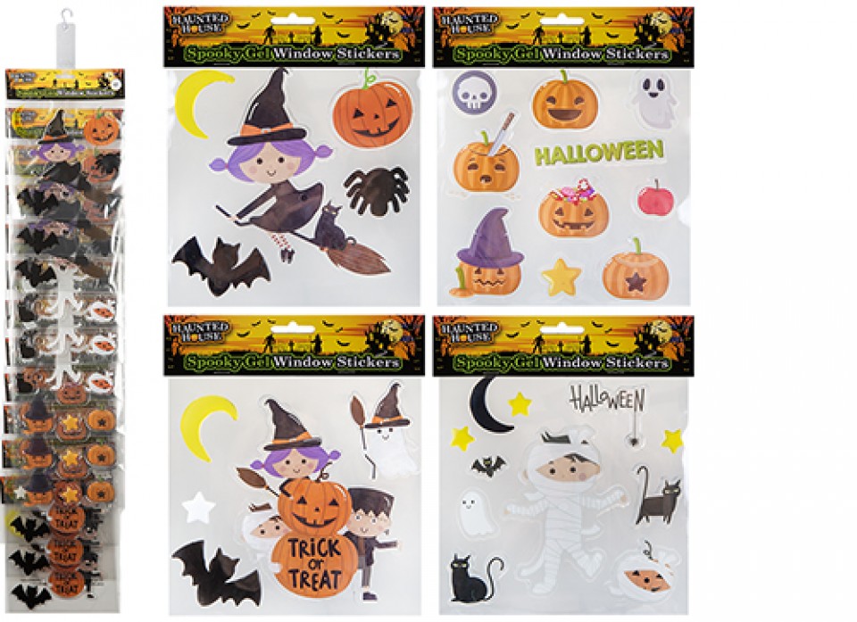 HAUNTED HOUSE PRINTED GEL STICKERS 20 X 20CM 4 ASSORTED