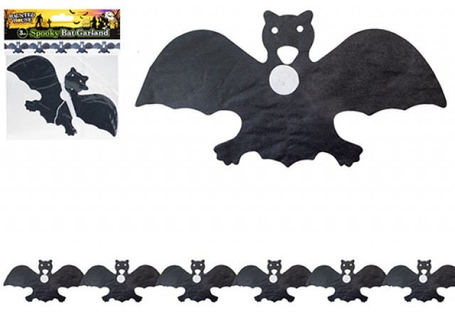 HAUNTED HOUSE BAT PAPER GARLAND 3MTR LENGTH