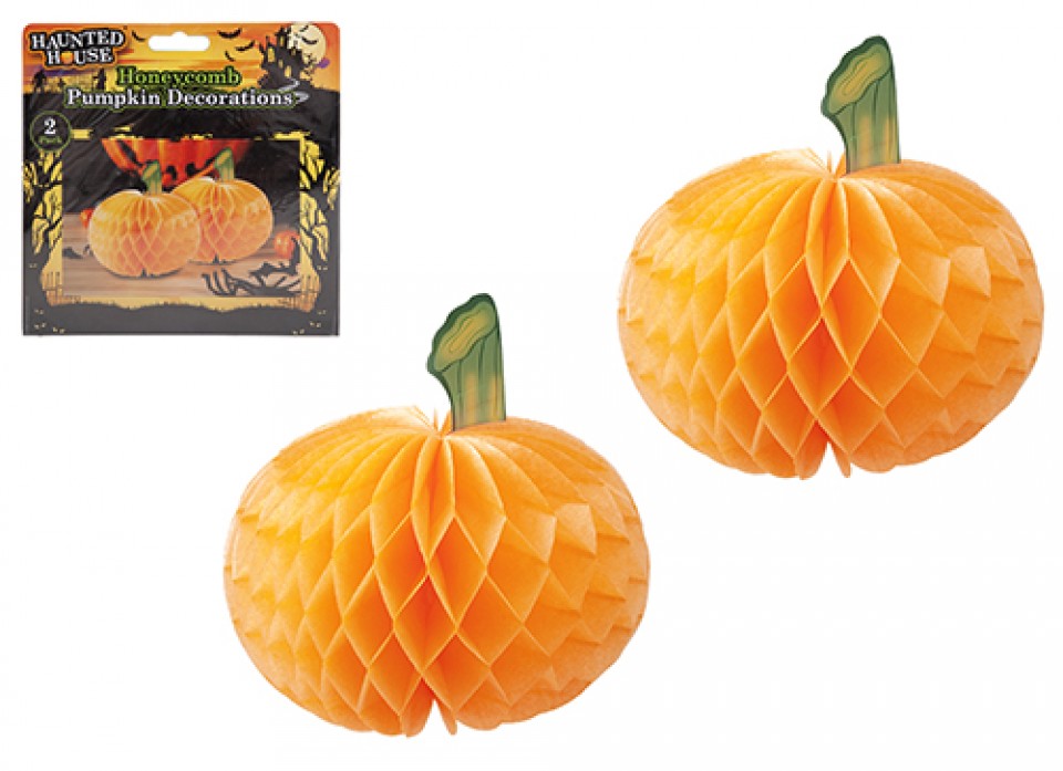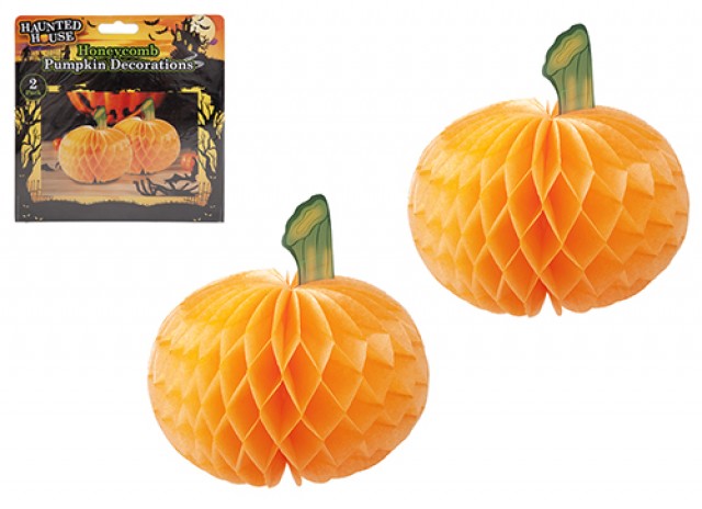 HAUNTED HOUSE HONEYCOMB PUMPKIN DECORATION SET OF 2