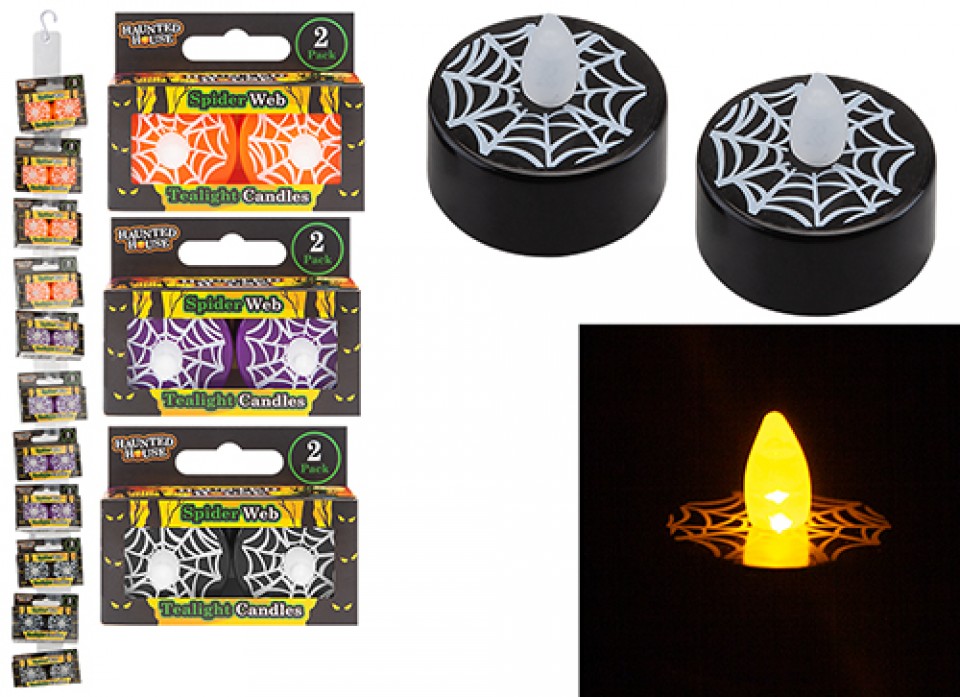 HAUNTED HOUSE SPIDERS WEB TEALIGHT CANDLES 2 PACK