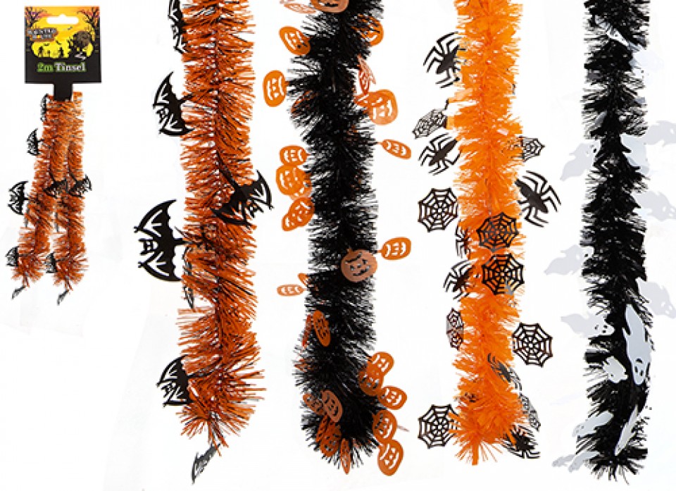 HAUNTED HOUSE HALLOWEEN TINSEL 2M 4 ASSORTED