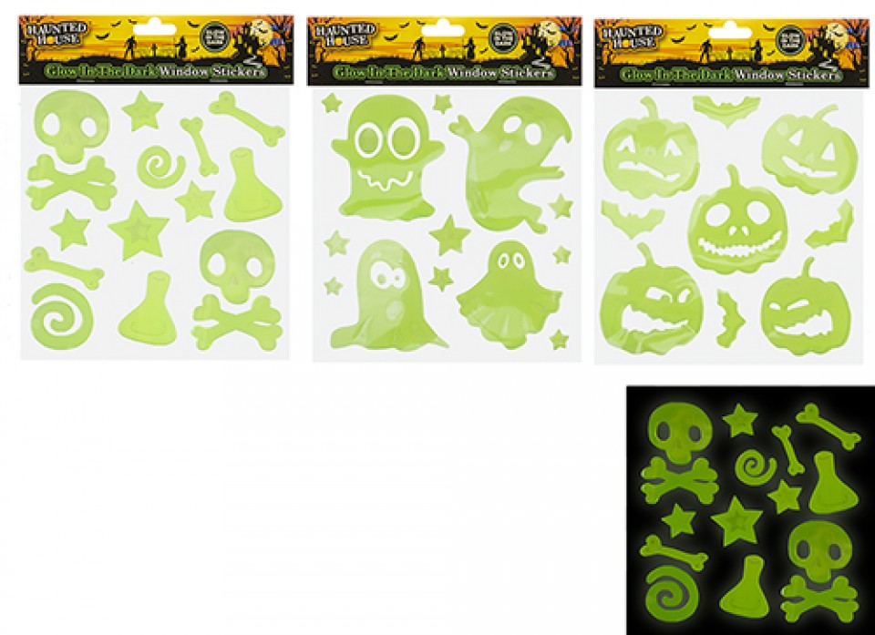 Boost Halloween retail sales with Haunted House Glow in the Dark Gel Stickers, available in 3 assorted designs. Perfect for window displays, party supplies and seasonal merchandising, these reusable gel decorations cling easily to smooth surfaces. Ideal for wholesale buyers seeking eye-catching, child-friendly Halloween d cor with strong impulse purchase appeal.