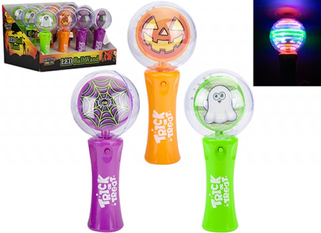 HAUNTED HOUSE HALLOWEEN LED BALL WANDS 3 ASSORTED