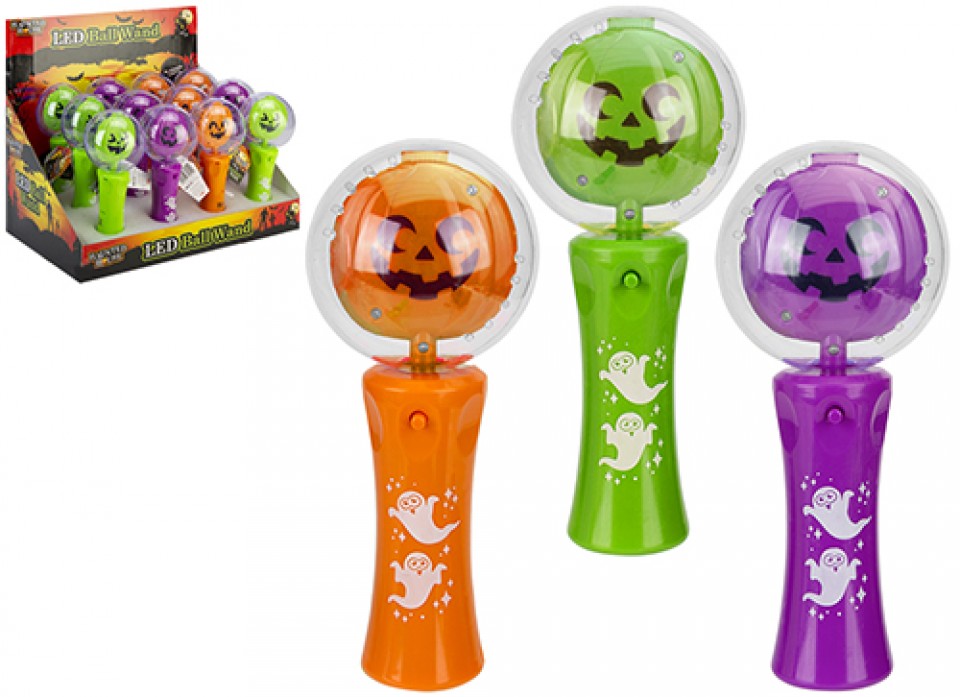 HAUNTED HOUSE PUMPKIN LED BALL WANDS 3 ASSORTED