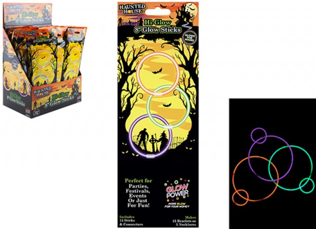 HAUNTED HOUSE GLOW STICKS 8" 3 ASSORTED COLOURS