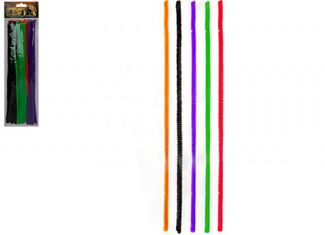 Bendable pipe cleaners in assorted Halloween colours.