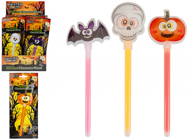 HAUNTED HOUSE CHARACTER GLOW WAND 8" 3 ASSORTED