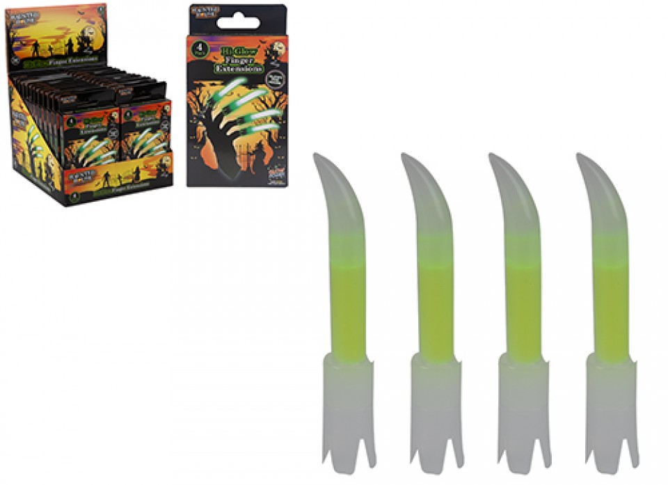 HAUNTED HOUSE GREEN GLOW FINGER EXTENSIONS X4 PACK