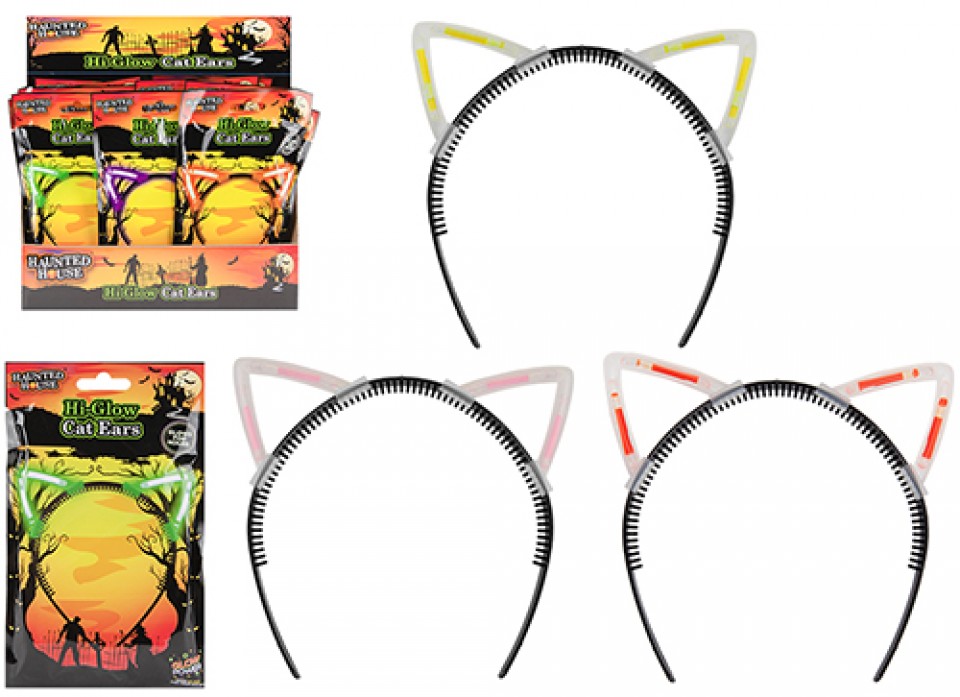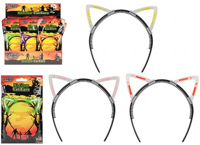 HAUNTED HOUSE HALLOWEEN GLOW CAT EARS 3 ASSORTED