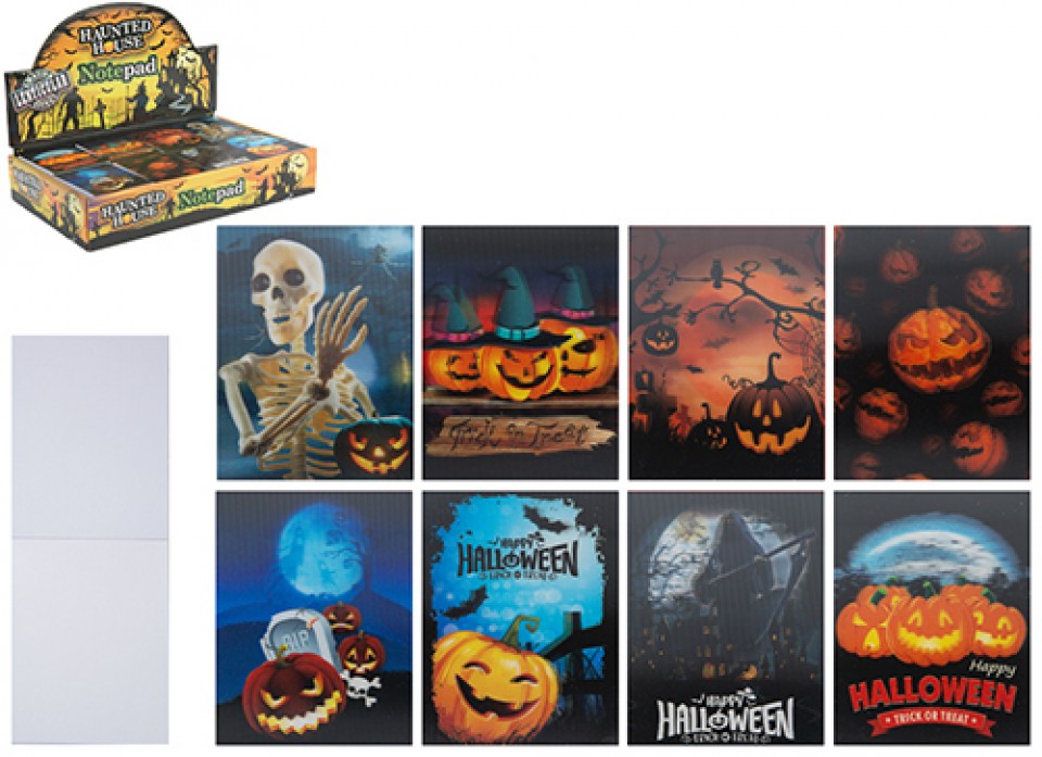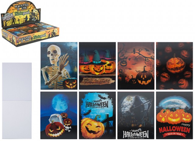 HAUNTED HOUSE LENTICULAR NOTEPAD 8 ASSORTED HALLOWEEN